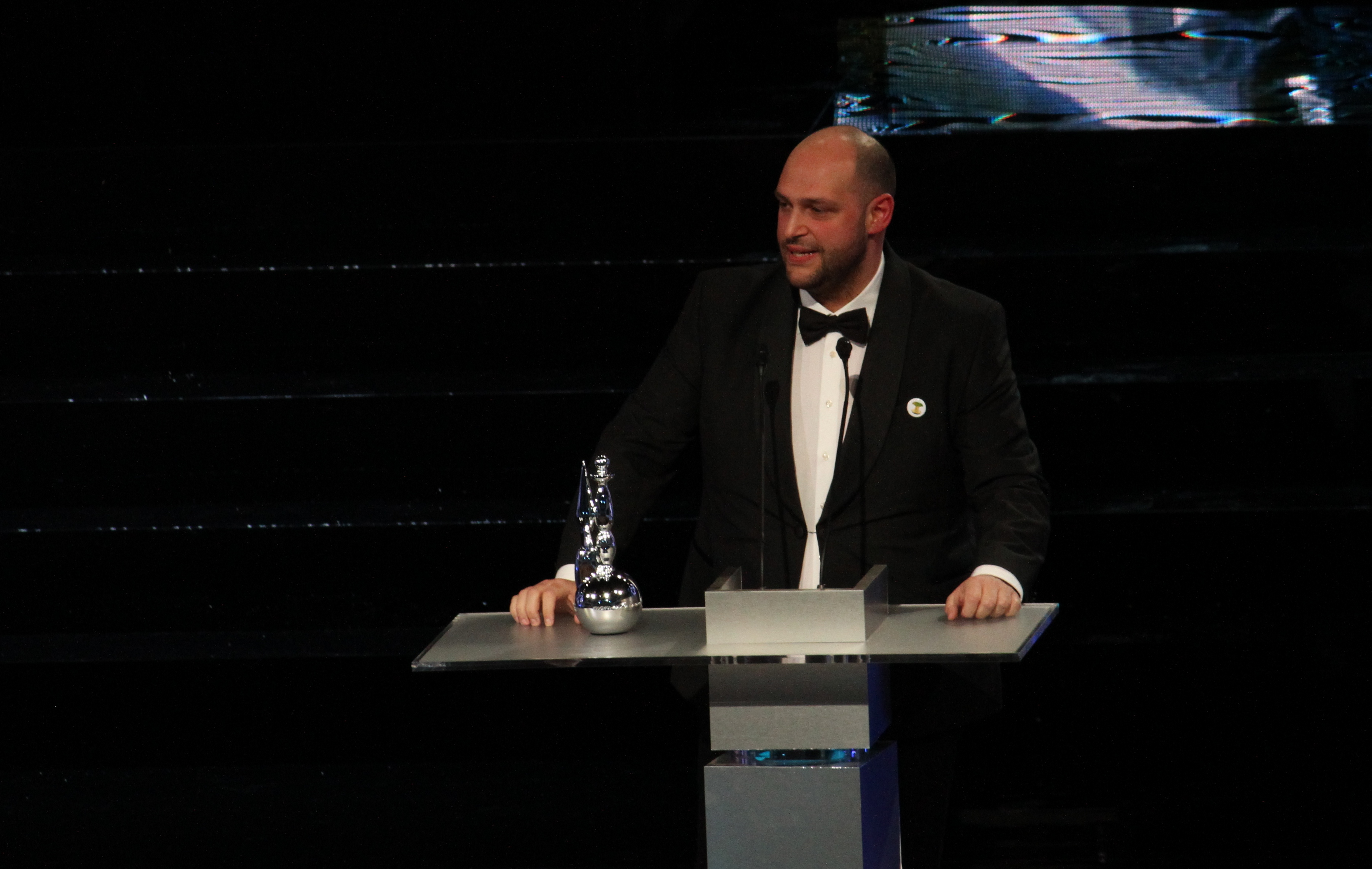 Anne-Pascale Clairembourg, couronnée l’an dernier pour Mobile Home, remet ensuite le prix du meilleur espoir à Achille Ridolfi pour sa prestation 5 étoiles dans Au nom du fils. L’acteur se fend d’un petit speech touchant et est la tout première personnalité récompensée aux Magritte à remercier sur scène Cinevox pour son soutien. Autant vous dire que ça nous touche en plein coeur.