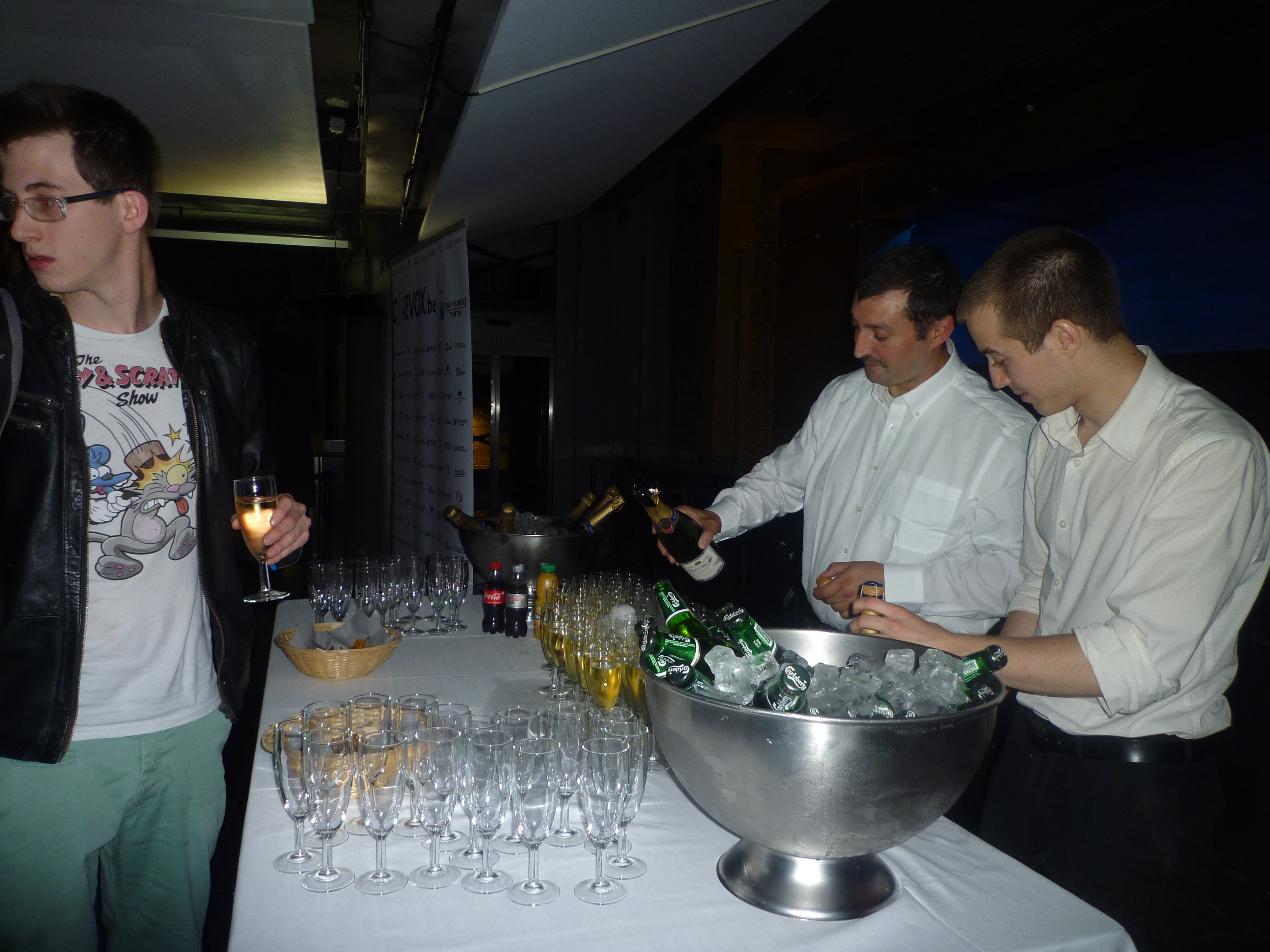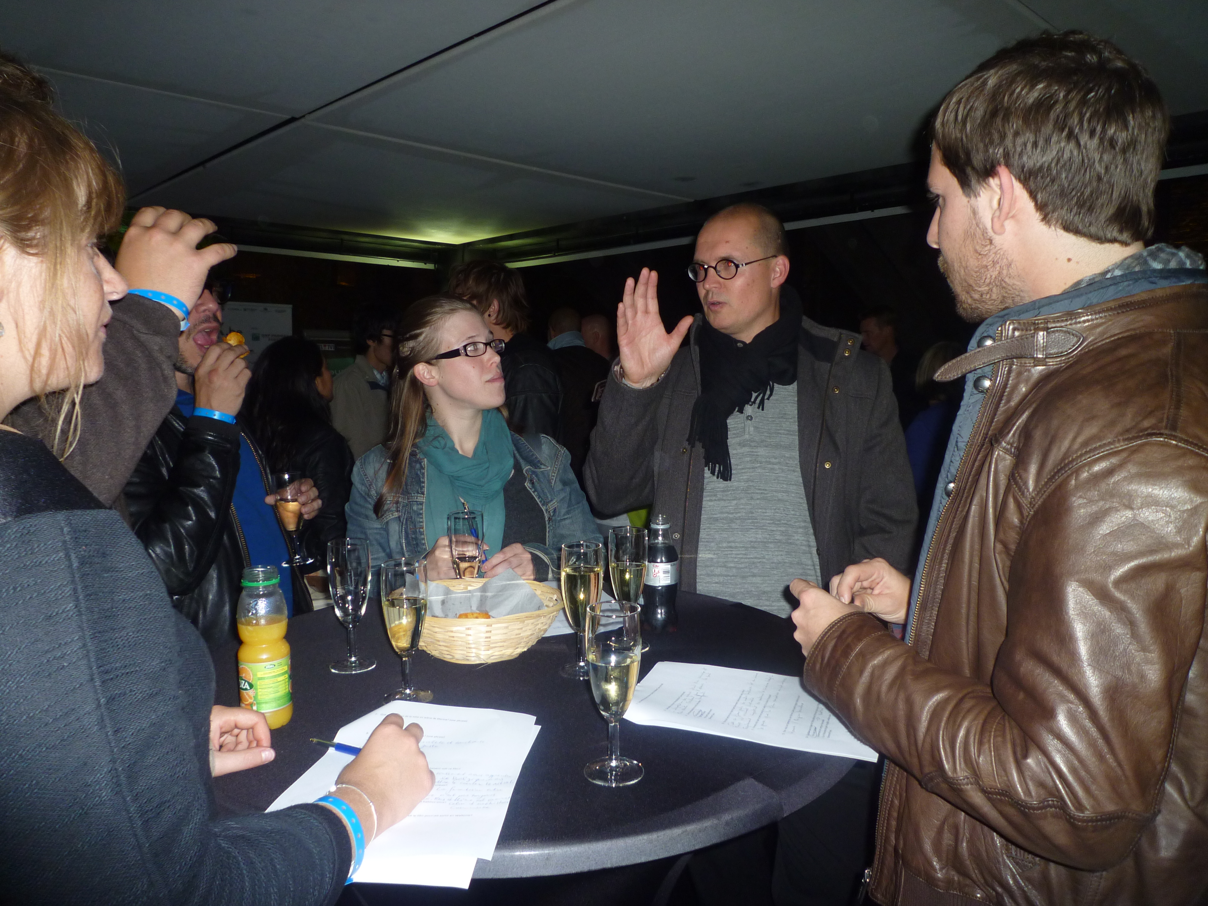 Autre homme concernée de près par le film, totalement ravi par la tournure de la soirée, Peter Bouckaert, le magicien producteur (Tot Altijd, Marina, Het Vonnis, de Behandeling pour ne citer que les chocs récents et à venir) d’autant plus bouleversé qu’il nous raconta ce soir-là que c’est Stijn Coninx venu présenter Daens au Festival de Gent en 1994 qui lui donna envie de travailler dans le cinéma. Un vrai moment d’émotion pure que le public a goûté avant de discuter avec l’équipe très accessible pendant un cocktail épique qui dura plus de deux heures (Peter est en gris sur la photo ci-dessus).