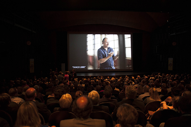Deuxième étape du périple. Le public de la maison de la culture découvre le clip Cinevox, un best of qui reprend les tournages de cinq films présents au FIFF, dont… Tango Libre bien sûr. [Photo FIFF]