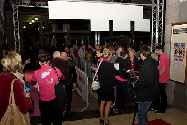 Devant le cinéma, la file. Mais tout le monde prend patience. Petit jeu: repérez le réalisateur présent sur ce cliché et une productrice de la RTBF aussi. [Photo FIFF]